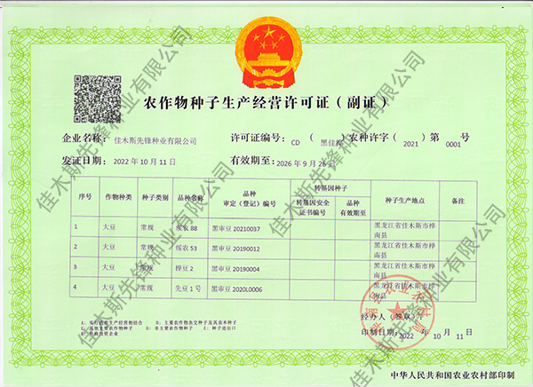 走進(jìn)我們 COME INTO US 您現(xiàn)在的位置:網(wǎng)站首頁(yè) > 走進(jìn)我們 >資質(zhì)榮譽(yù) 公司簡(jiǎn)介 企業(yè)文化 領(lǐng)導(dǎo)致辭 資質(zhì)榮譽(yù) 農(nóng)作物種子生產(chǎn)經(jīng)營(yíng)許可證(副證) 農(nóng)作物種子生產(chǎn)經(jīng)營(yíng)許可證(副證) 農(nóng)作物種子生產(chǎn)經(jīng)營(yíng)許可證(副證) 黑農(nóng)48省農(nóng)作物品種合格證書 黑農(nóng)48植物新品種權(quán)證書 綏農(nóng)26植物新品種權(quán)證書 共32條記錄 當(dāng)前為第2頁(yè)/共6頁(yè)上一頁(yè)1234...6下一頁(yè)